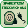 Bewusstseinsschaffung durch Aufkleber: "Spare Strom - Steck mich aus", „Nimm 2“ und „Licht bitte aus!“